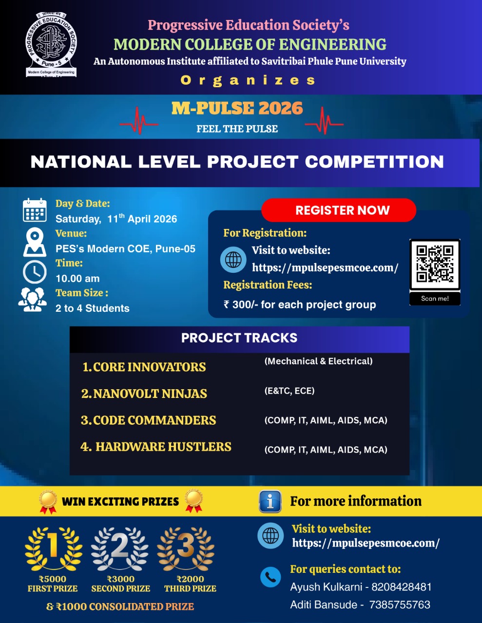 PES's Modern College of Engineering is organizing the "M- PULSE NATIONAL LEVEL PROJECT COMPETITION."