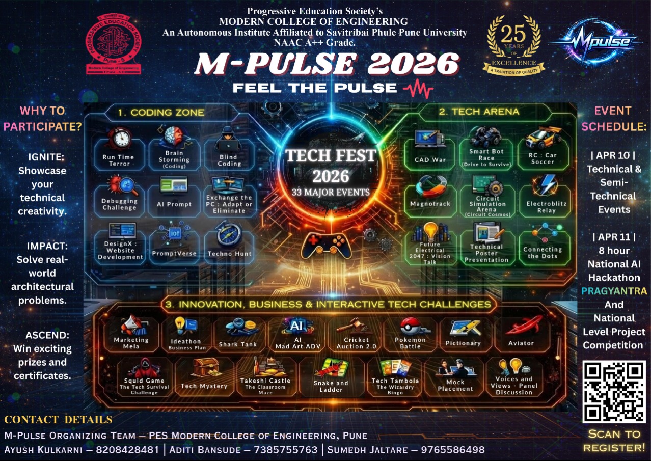 PES's Modern College of Engineering Pune proudly presents the "M-PULSE 2026 – NATIONAL LEVEL TECH FEST ."